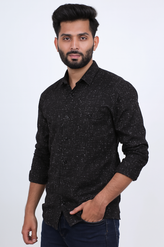 Men Printed Full Sleeve Formal Shirt-Black (Size-L)
