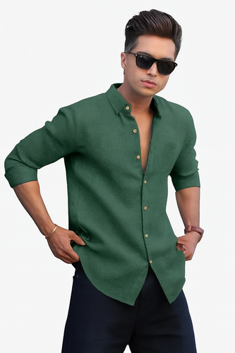 Men Casual Shirt With Full sleeve-Green (Size-L)